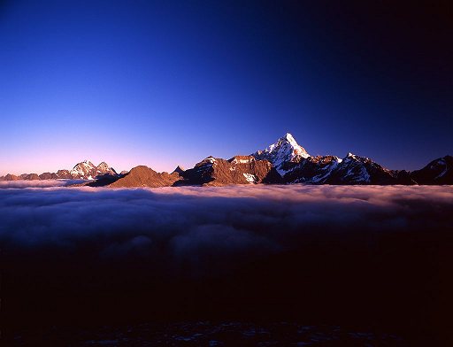 The highest peak of Four Girls Mountains (east side) on a sea of clouds