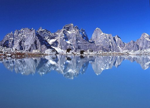 The mountains in Daogou Gorge and the Yangmangtai (Fattening Sheep Plateau) Lake