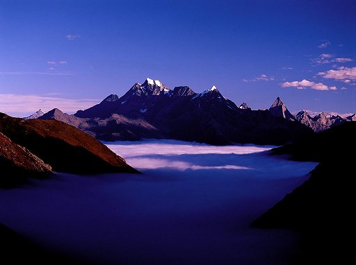 The right-most knife edged peak is Mount Pomiu 5413m which means the celestial peak.