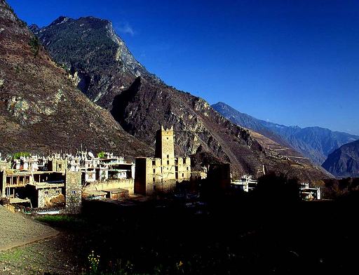 The ruins of the manor house which was built on a mountainside