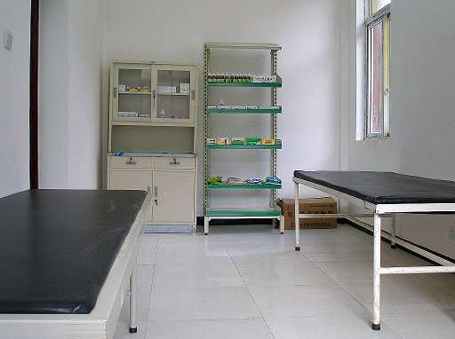 A shelf for drug and a bedroom of the new clinic.