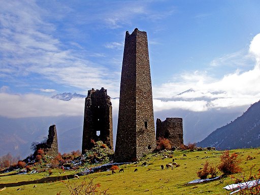 A set of piled stone towers what was built on a high place of the village.